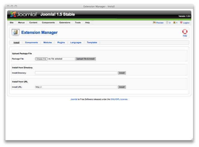 Another new addition for template designers is an ability to create custom module chrome. Module chrome is how module output is wrapped in a template. While Joomla! 1.0 has a handful of ways to render modules Joomla! 1.5 gives the designer ultimate freedom in the ability to create whatever chrome is appropriate.
